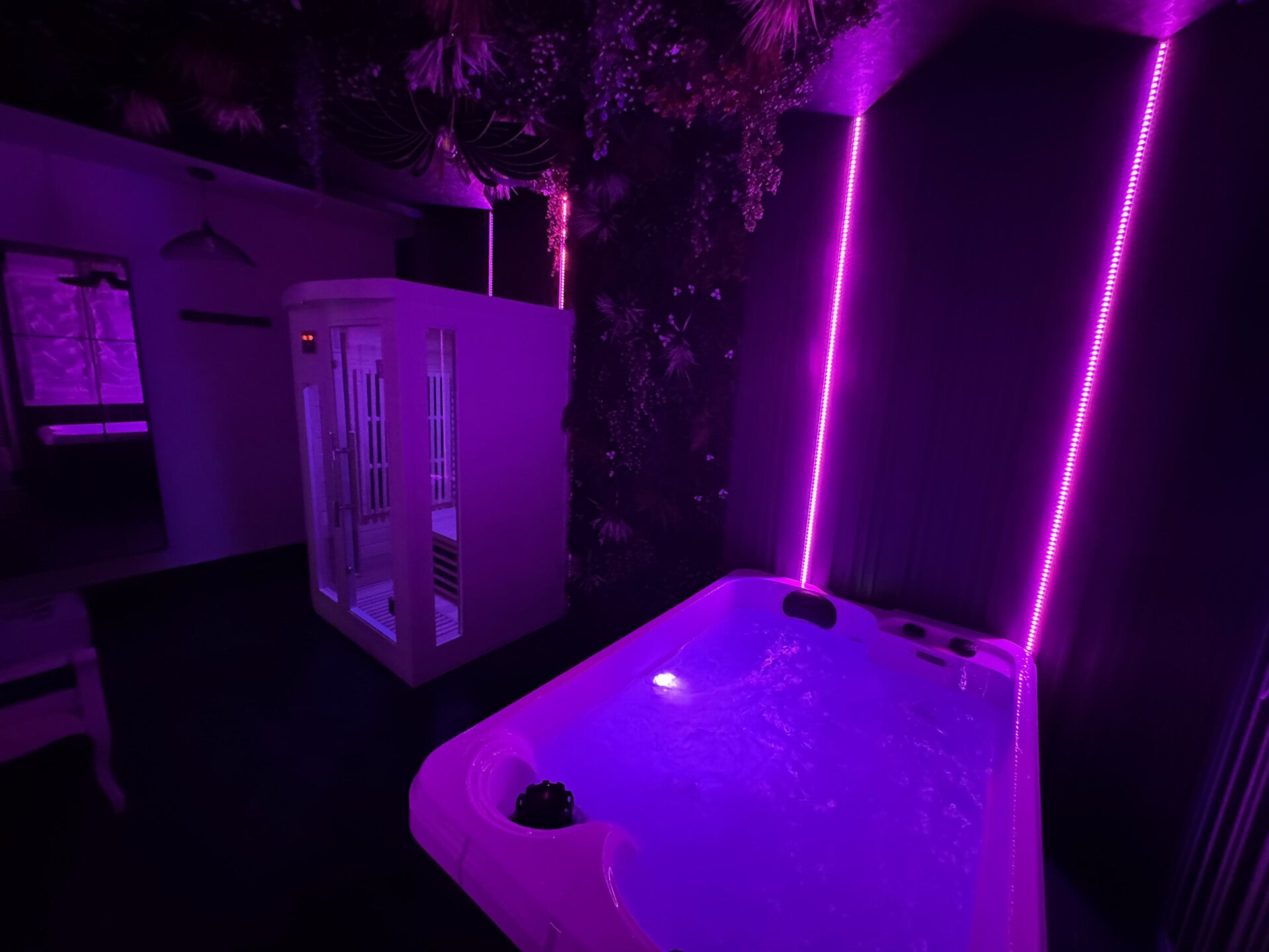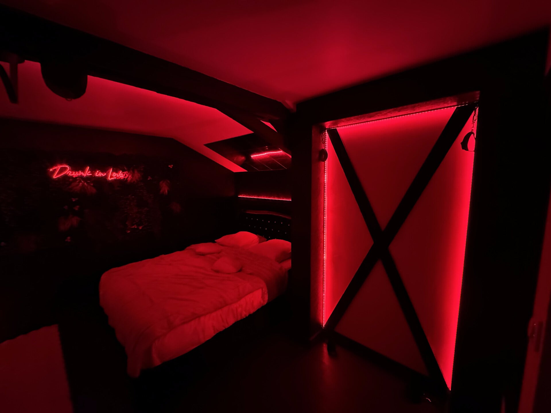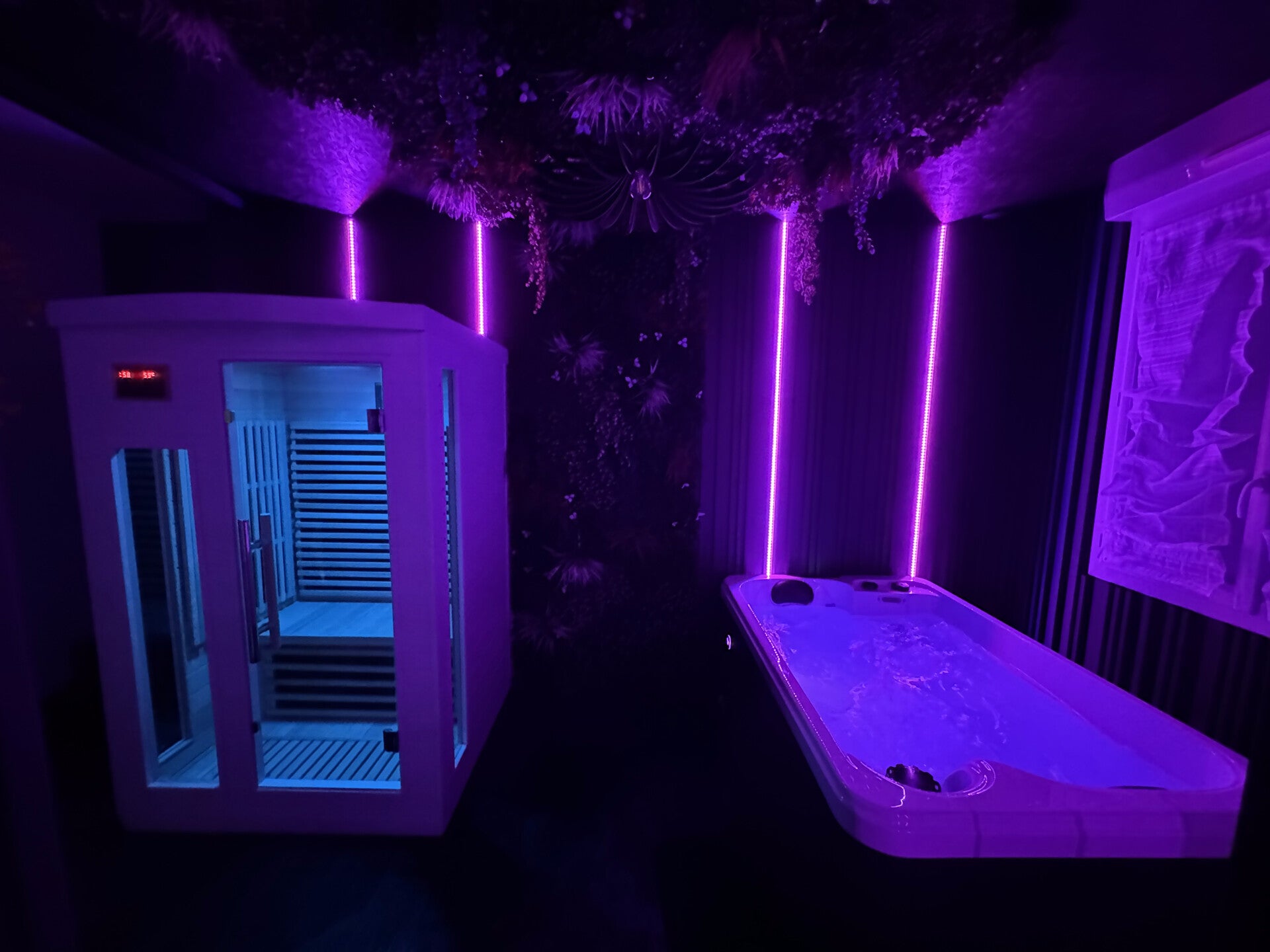 Laissez-vous séduire par notre pièce spa, un havre de paix et de sensualité. Imaginez-vous vous détendre dans le jacuzzi, suivi d'une séance de sauna, avant de rejoindre le confort et l’érotisme de votre chambre. Chaque détail est pensé pour une évasion parfaite.