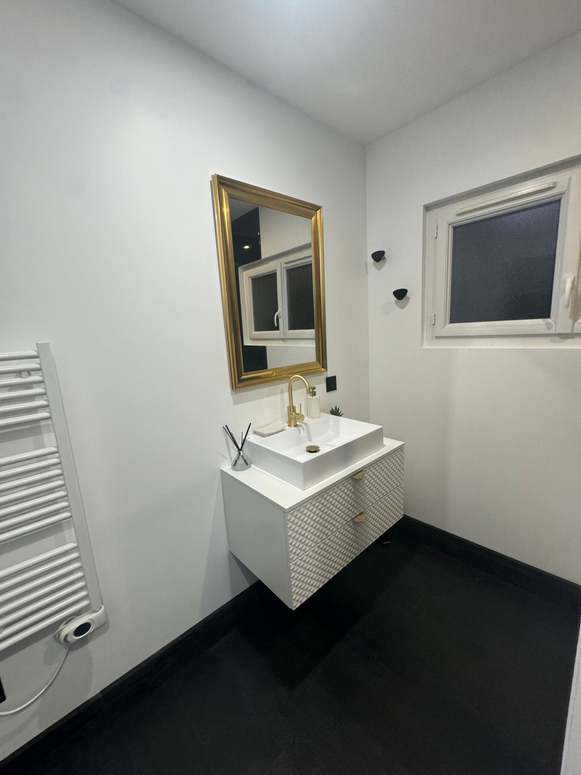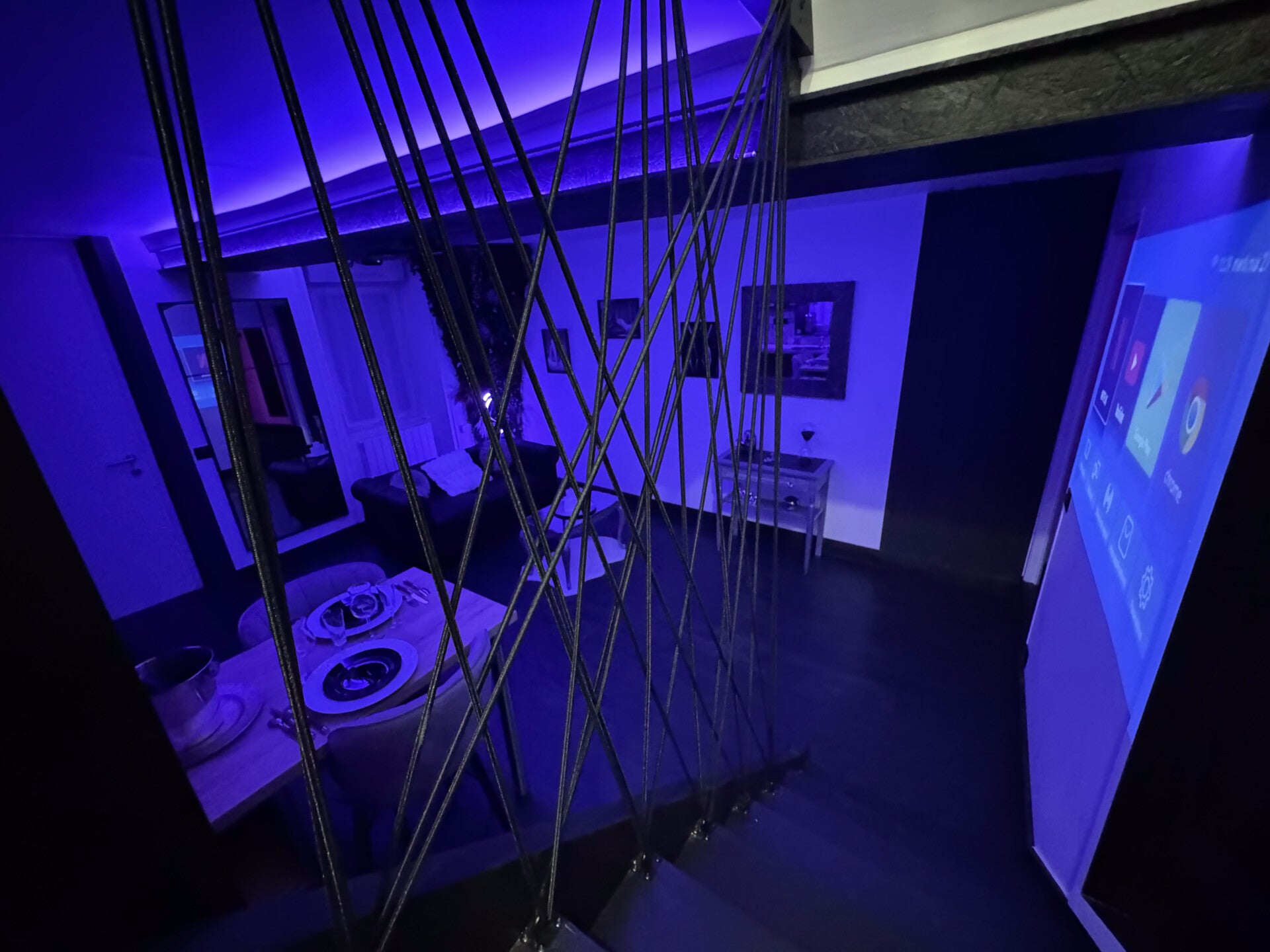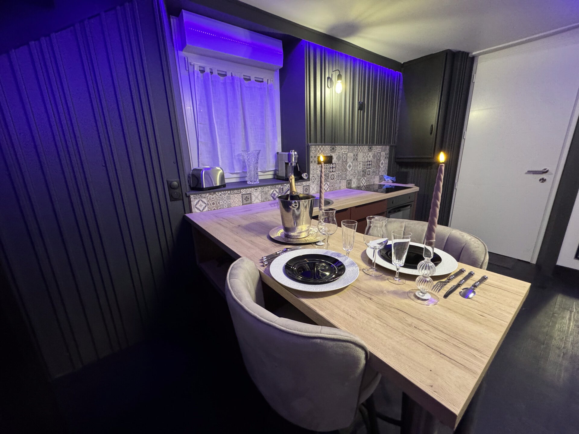 Dans la pièce de vie Notre décoration atypique, avec son mur végétalisé, son mobilier baroque tranchant avec la decoration moderne et son éclairage LED interchangeable, crée une atmosphère à la fois romantique et excitante. La cuisine est entièrement équipée.