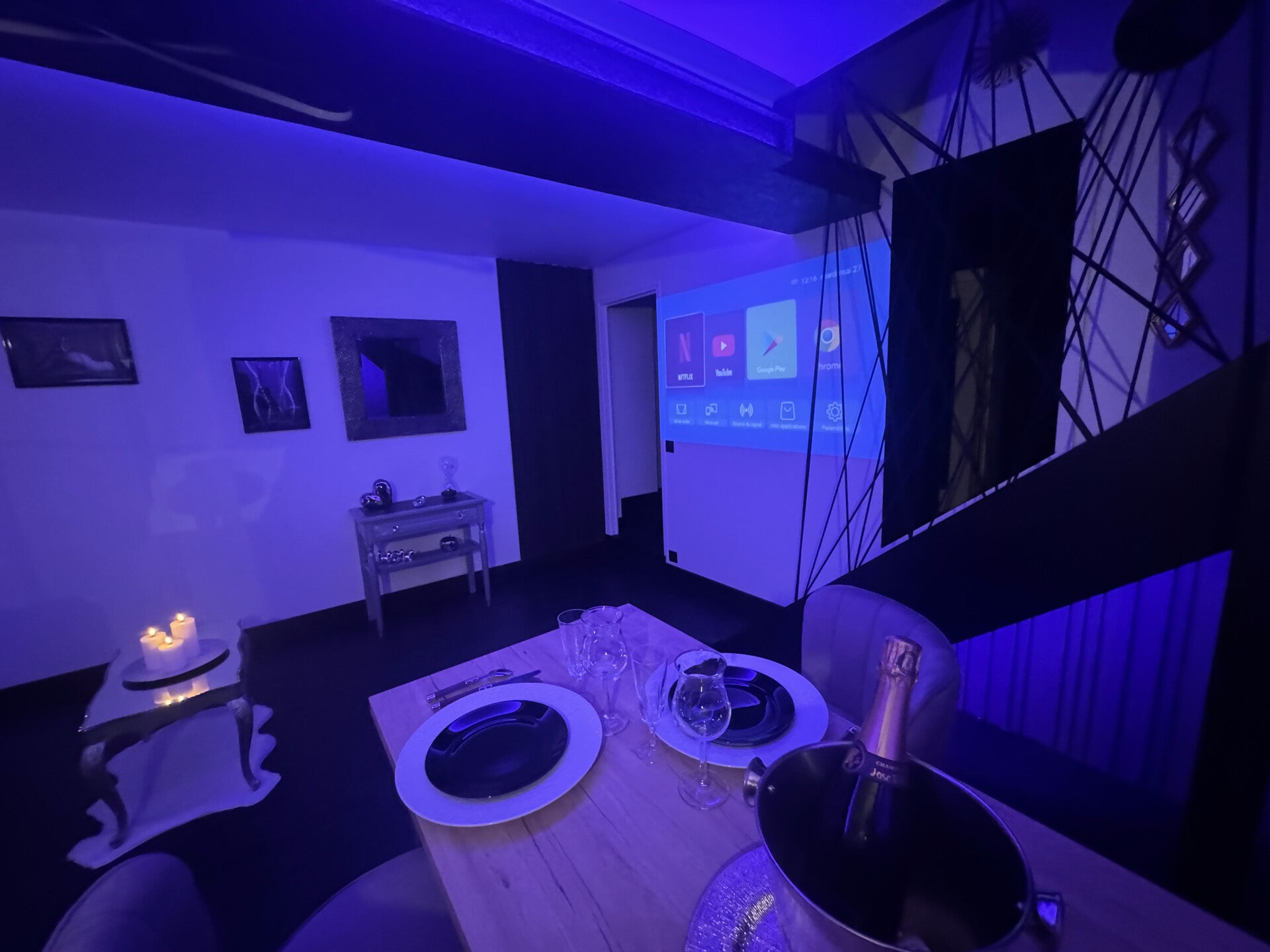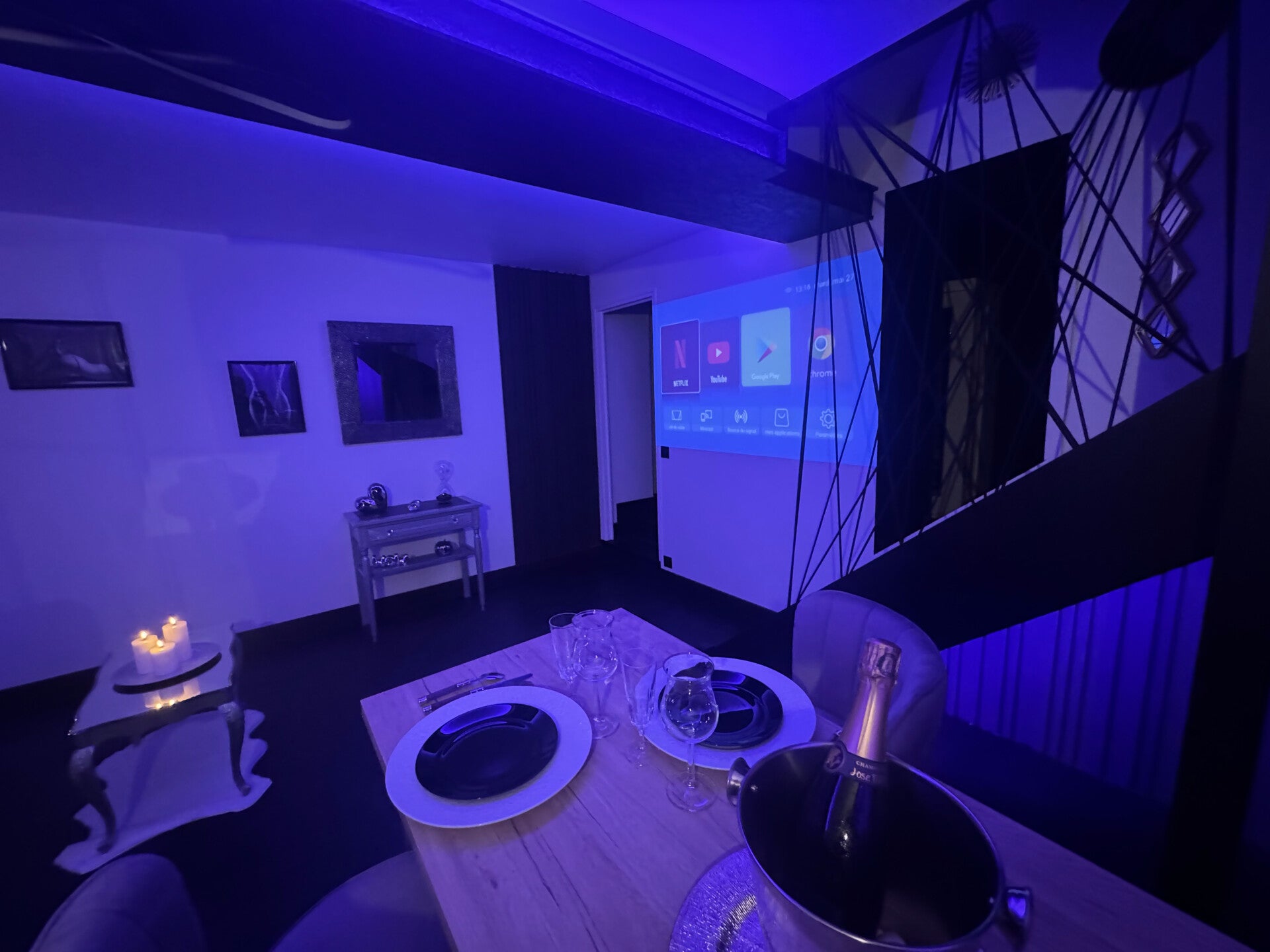 Découvrez L'Evasion Secrète Love Room Spa à travers notre galerie photo. Laissez-vous inspirer par l'ambiance unique et les équipements haut de gamme qui rendent chaque séjour inoubliable. Plongez dans un univers de détente et de passion, conçu pour raviver la flamme et créer des souvenirs précieux.
